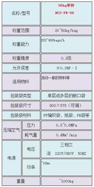 DCS-PD-50型电脑定量包装机,是针对粉状颗粒状混合物、流动性较差的物料设计而成的包装机,采用落地型架构,结构体积小,安装方便。它具有称量精度高,操作简单方便、可靠性强、功能完备等特点,可广泛应用于饲料、粮食、冶金、医药、石油化工、非金属矿、精细化工、无机盐、橡塑、皮革、化肥等行业。