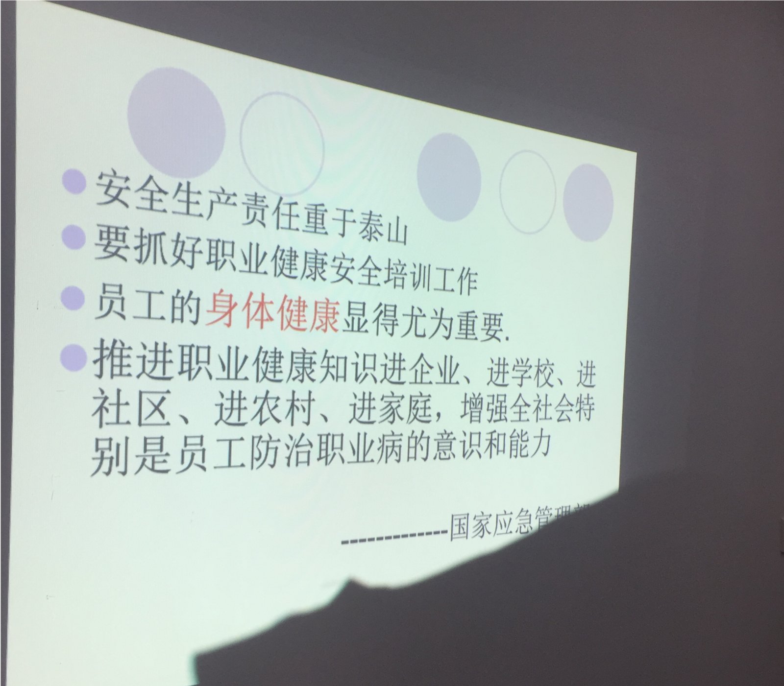 在推行安全生产的同时,专家也指出,要加强员工的职业健康安全培训工作,毕竟身体才是革命的本钱!