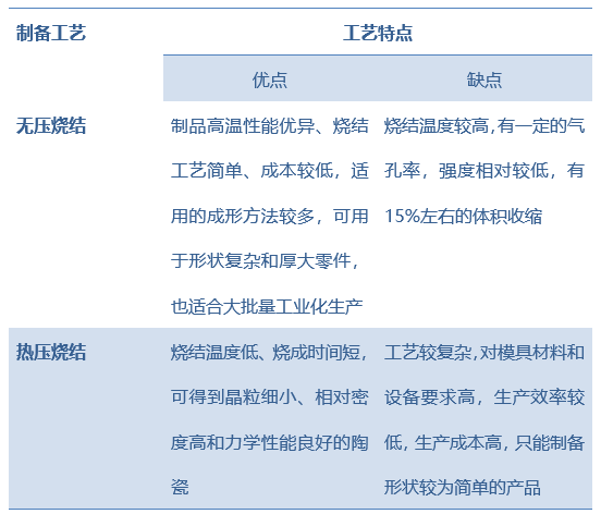 通常热压烧结条件为:真空或惰性气氛压力20~40MPa,温度2200~2300℃,保温时间0.5~2h。