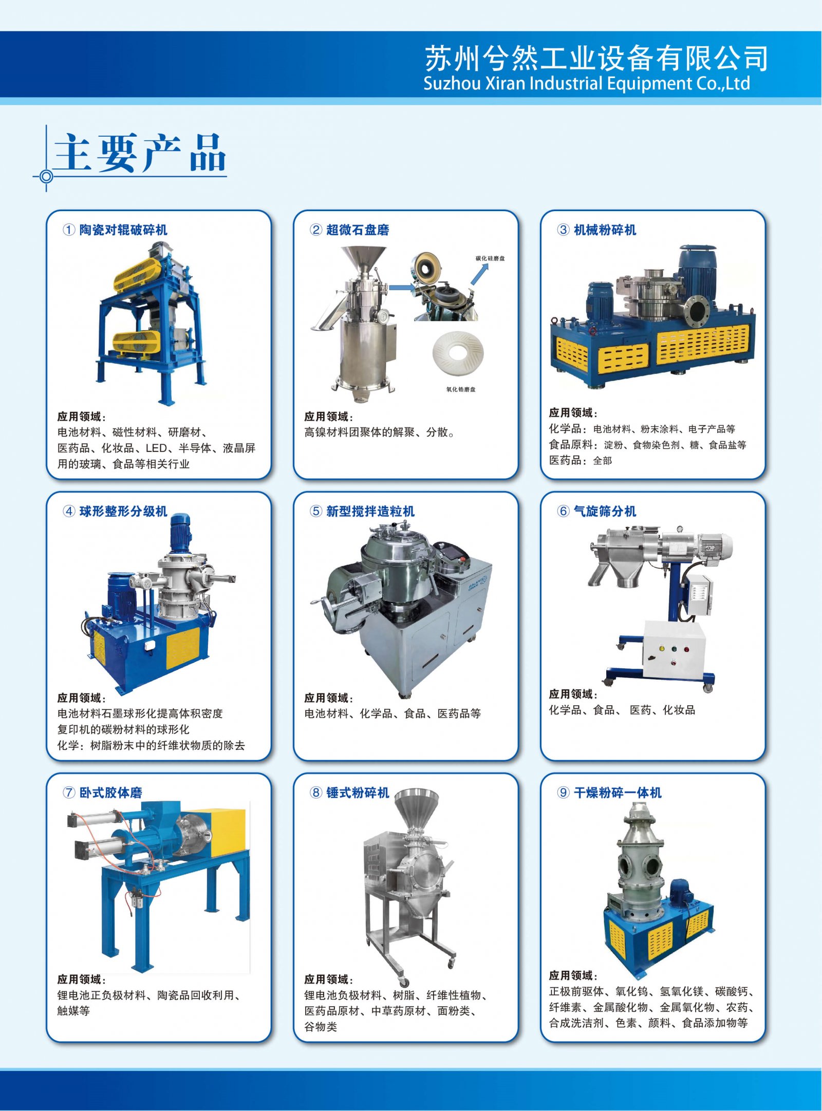 苏州兮然工业设备有限公司,是一家集研发、生产、销售为一体专业从事材料的粉碎,造粒,包覆,干燥等机械设备的粉体设备公司。经过多年努力与发展,拥有独立的工厂和研发中心。公司获得省级高新技术企业资质等荣誉。和日本ITAT成立粉体设备研究院,并取得日本达博集团、固乐工程,在中国销售的代理权。我司还配有专门的实验室,欢迎广大客户来我司进行试验及测试。