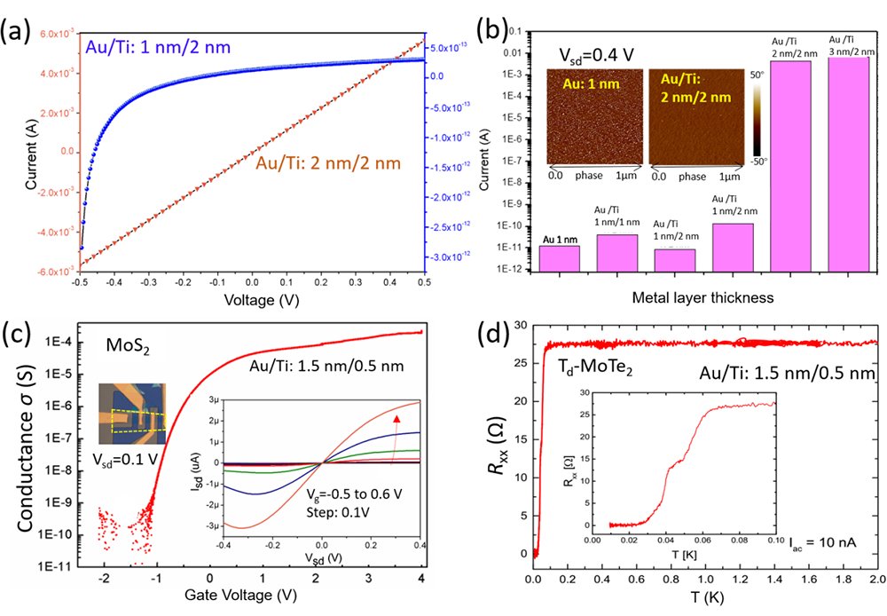 图5. 通过控制金属膜的厚度,可以获得绝缘金属膜,可在器件中实现高开关比和超导特性测量。