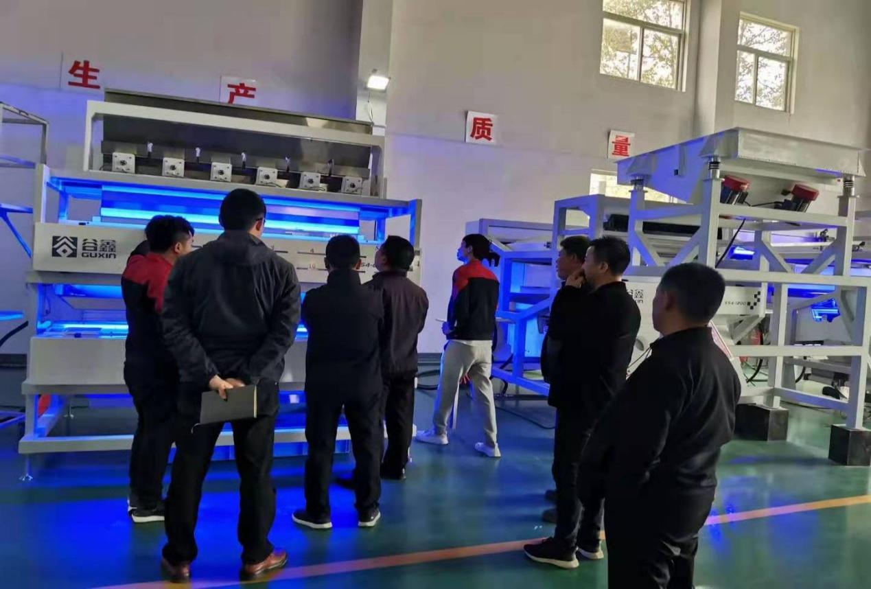 河南、江苏企业老板到谷鑫公司考察石英石和石英砂色选机并签订合同