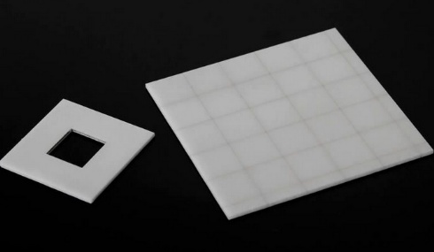 流延成型制备氮化铝陶瓷基片的主要工艺,将氮化铝粉料、烧结助剂、粘结剂、溶剂混合均匀制成浆料,通过流延制成坯片,采用组合模冲成标准片,然后用程控冲床冲成通孔,用丝网印刷印制金属图形,将每一个具有功能图形的生坯片叠加,层压成多层陶瓷生坯片,在氮气中约700℃排除粘结剂,然后在1800℃氮气中进行共烧,电镀后即形成多层氮化铝陶瓷。此外,氮化铝基板的成型方式还有注射成型、流延等静压成型等。