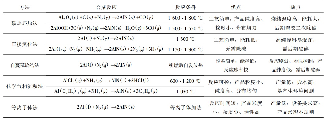 (来源:蒋周青等.氮化铝粉体制备技术的研究进展)