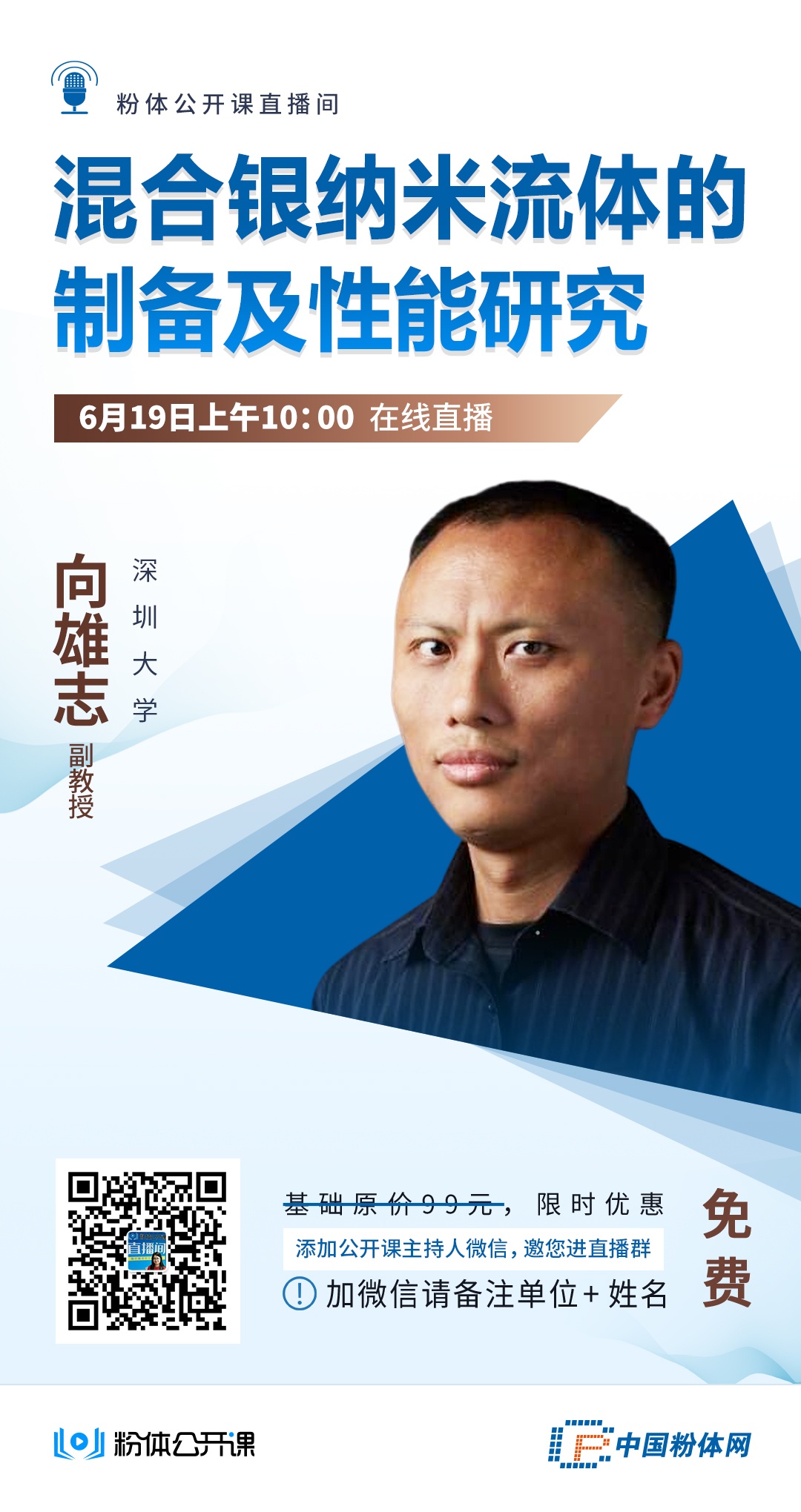 纳米流体作为一种新型高效换热工质展现出良好的换热性能引起了许多研究者的关注。2021年6月19日上午10点,www.188betkr.com 旗下粉体公开课平台邀请到深圳大学副教授向雄志作《混合银纳米流体的制备及性能研究》报告。此研究采用混合纳米银材料制备了热导率达到0.9264W/(m·K)的高热导率纳米流体,运用仿真模型获得了这样的高效率通道的棒和颗粒的最优比例。该研究还研究了纳米流体的粘度、润湿性和腐蚀性。实验证明:少量的纳米银的添加对流体的粘度影响不大,该纳米流体对于铜,不锈钢等换热器材料的腐蚀性与普通自来水也没有差别。