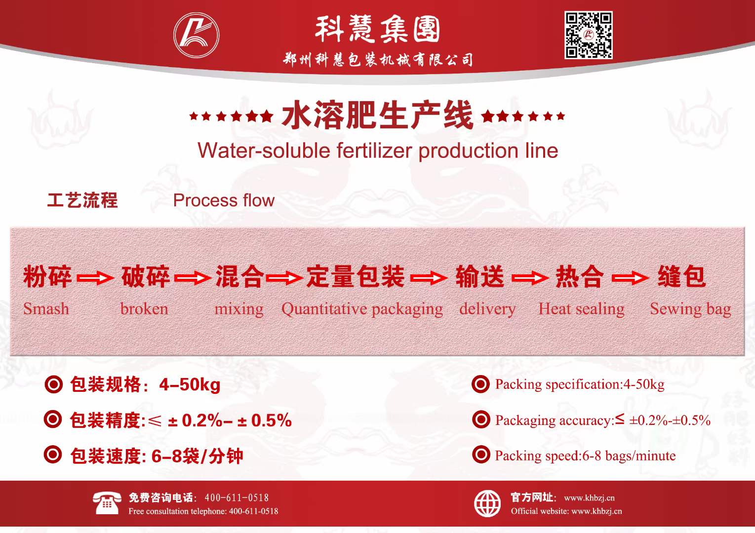 由KH-PD-PL型多斗式皮带配料秤、斗式提升机、搅拌机、KH-ZL-50自动定量包装机、GK35-6A缝包机、3米输送机、包装机缓存料仓、PLC电控柜构成。