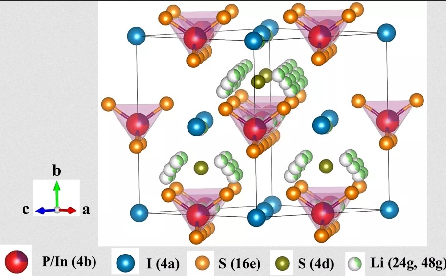通过DFT计算得到的铟(In)掺杂Li6PS5I电解质的结构示意图