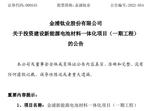 化工产业金融:投资超12亿!金浦钛业拟投建能源电池材料一体化项目(一期工程)