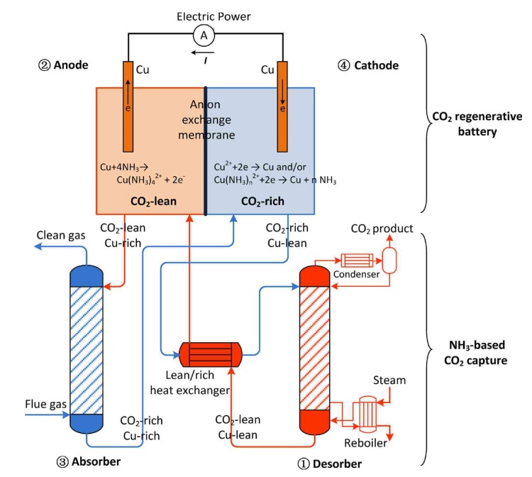 CO2再生胺基电池(来源:Li Kangkang,et al.CO2regenerative battery for energy harvesting from ammonia-based post-combustion CO2capture)
