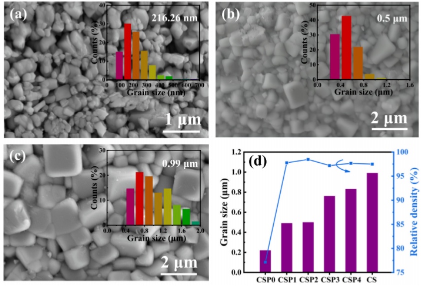 图2 CSP2陶瓷达到小晶粒尺寸与高致密度的平衡