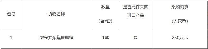 项目名称:中国科学院上海免疫与感染研究所激光共聚焦显微镜采购项目