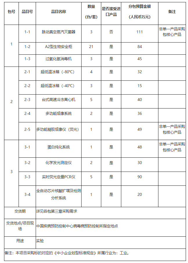 项目名称:中国疾病预防控制中心病毒病预防控制所实验室常规仪器设备更新和大型仪器设备购置项目