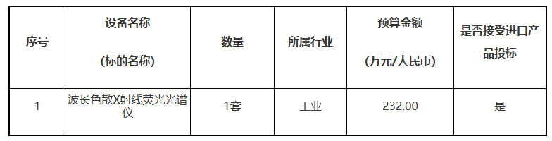 项目名称:中国地质科学院矿产综合利用研究所波长色散X射线荧光光谱仪采购项目