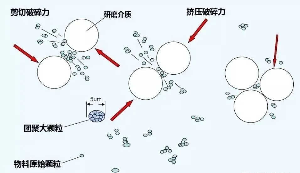 此外,粉体在粒径细到一定程度时,会出现团聚现象,原本细小的颗粒会聚集成团,这对实际生产是十分不利的,为了解决粉体团聚问题,工业上通常采用机械方式研磨解聚,常用的研磨设备主要有卧式砂磨机、立式珠磨机和球磨机等。