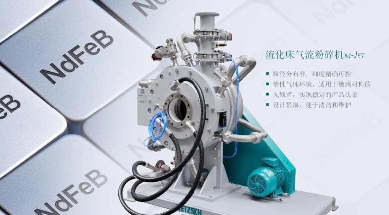 耐驰m-Jet高能量流化床气流磨是专为稀土磁粉(如钕铁硼)的干法精细研磨而设计的。