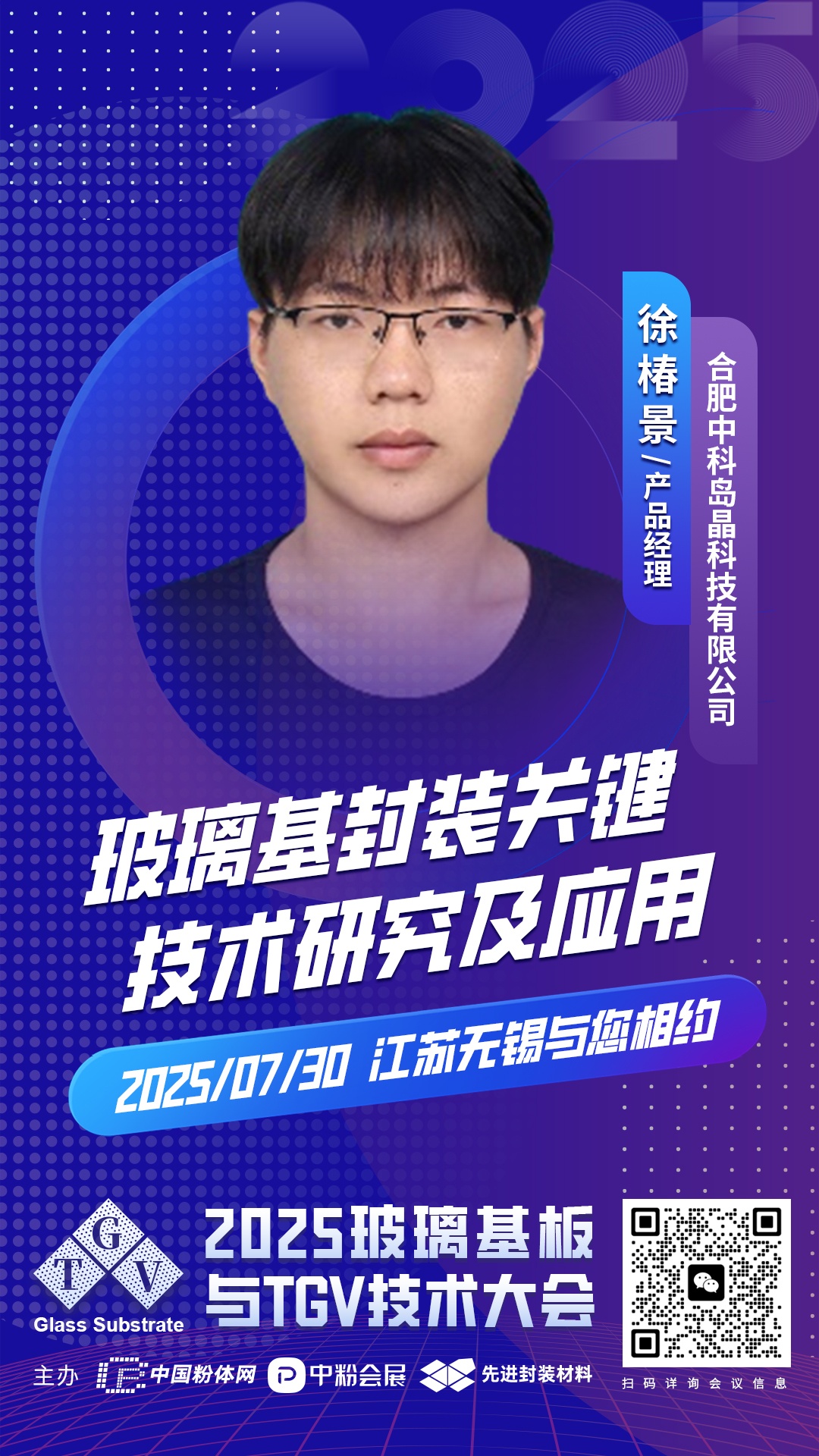 为强化行业信息交流,www.188betkr.com 将于2025年7月30日在无锡举办2025玻璃基板与TGV技术大会。届时,合肥中科岛晶科技有限公司的产品经理徐椿景博士将作题为《玻璃基封装关键技术研究及应用》的报告,分享其关于TGV技术的关键研究。合肥中科岛晶科技有限公司配备了先进的制造设备和完善的工艺流程,具备玻璃微孔制造、微孔金属填充、玻璃微结构制作、玻璃晶圆级封装和叠层制造等核心技术能力。公司主要致力于玻璃基微纳加工技术的研发与应用,产品广泛应用于光学、半导体、生物医疗、通信等领域。