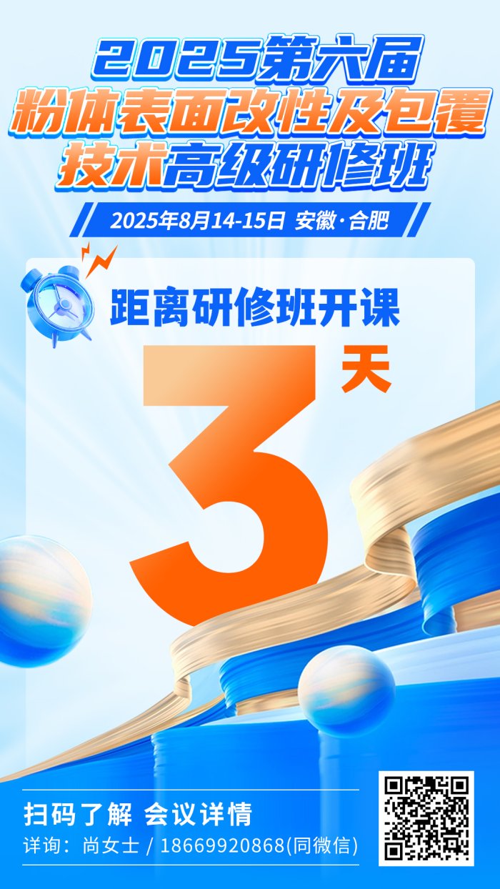 www.188betkr.com 讯为推动粉体表面改性及包覆技术发展,促进产学研交流合作,www.188betkr.com 粉体公开课将于2025年8月14-15号,在安徽省合肥市举办“2025第六届粉体表面改性及包覆技术高级研修班”,江苏精研科技股份有限公司邀您一同参加!