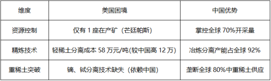 3. 供应链自主:美国斥资10亿美元扶持MP重建本土产业链,目标2028年实现万吨级永磁体产能,摆脱对中国90%精炼产能的依赖。