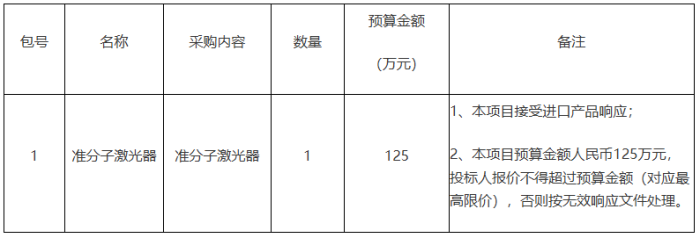 项目名称:准分子激光器采购项目
