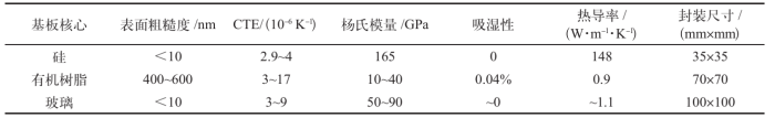 不同基板核心层材料性能对比 来源:《玻璃基板技术研究进展》(赵瑾等)