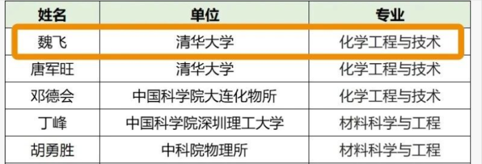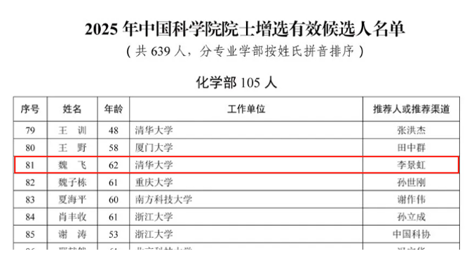 www.188betkr.com 讯近日,清华大学魏飞教授成功入选中国科学院院士增选有效候选人名单。