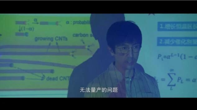 此前,在热播的电视剧《三体》中,主人公汪淼重启实验的场景令人印象深刻,画面中汪淼身后关于碳纳米管研究的PPT,正是出自魏飞教授发表在ACS Nano期刊中的图片和公式。