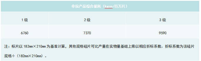 明确能耗等级:太阳能电池用硅单晶1级综合能耗≤2.27kgce/kg,硅单晶片(182mm×210mm标片)1级能耗≤6760kgce/百万片,其他规格需按折标系数换算,推动企业通过工艺优化降低单位能耗。