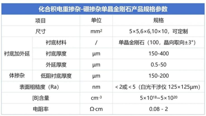 在硼掺杂方面,化合积电成功实现硼掺杂单晶金刚石从浓度(1015cm-3)到高浓度掺杂(1020cm-3)大范围调控,产品已通过技术验证并稳定交付。公司也将持续迭代金刚石的掺硼性能,推进p型金刚石的突破,为金刚石器件研发与应用打开无限可能。
