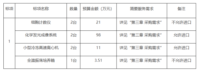 项目名称:化学发光成像系统、细胞计数仪等一批设备