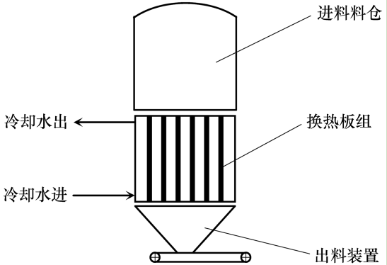 粉体流换热器是一种间接换热的粉体冷却设备,通常由进料仓、传热板组、下料仓等组成。这种换热方式结合了粉体密相输送和传统板式换热器的设计思路,高温固体粉料依靠自身重力自流通过板式换热器的狭窄通道,与另一侧的冷却水进行间接换热,达到将物料冷却的目的,必要时可以副产热水,回收热量。