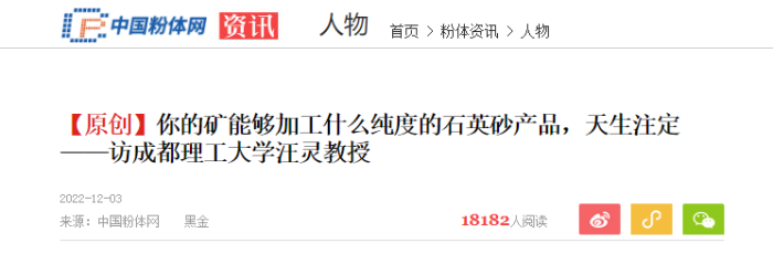 www.188betkr.com 讯2022年,在由www.188betkr.com 主办的“第六届全国石英大会”上,成都理工大学汪灵教授首次以《石英的提纯定律与高纯石英原料品级划分》为题做了大会报告,会后,汪灵教授接受了www.188betkr.com 的独家专访,本次专访以《你的矿能够加工什么纯度的石英砂产品,天生注定》为题一经发布即引起业内巨大反响。