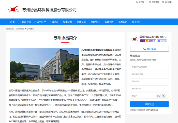 苏州协昌环保科技股份有限公司深耕环保设备领域数十年,专注于除尘设备、废气处理系统等环保装备的研发与制造。其自主研发的布袋除尘器、脉冲除尘器等产品,凭借“高效节能、稳定可靠”的特点,广泛应用于水泥建材、钢铁冶金、化工制药等细分领域。