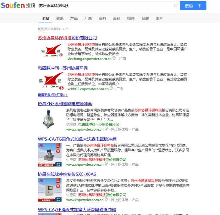 粉体网为苏州协昌提供搜索关键词绑定与优先展示服务。当用户在粉体网搜粉引擎搜索 “苏州协昌环保科技”“粉体除尘设备” 等核心关键词时,粉体网平台及苏州协昌的企业展台将在搜索结果中获得首位推荐,相关产品也会优先展示。这一服务从流量入口精准锁定目标客户,大幅缩短品牌曝光路径,有效提高企业获客效率与询盘转化率,让有粉尘治理需求的粉体企业快速找到靠谱合作伙伴。