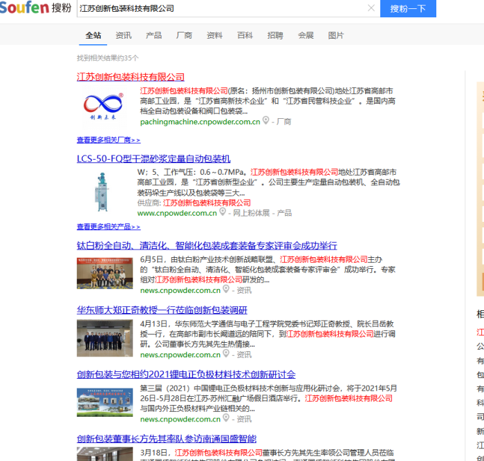 在信息繁杂的网络世界里,粉享通为江苏创新包装科技争取到了 “优先相遇” 的机会。只要用户在粉体网搜粉引擎里,搜索 “江苏创新包装科技”核心关键词,江苏创新包装科技的企业专属展台,还有相关的产品与方案,就会在搜索结果里优先出现,甚至能获得首位推荐。这就像在人群中,为江苏创新包装科技举了一块醒目的牌子,让有包装升级需求的企业,能更快地找到它,大大缩短了品牌曝光的路径,也让企业的获客效率与询盘转化率,慢慢有了提升。