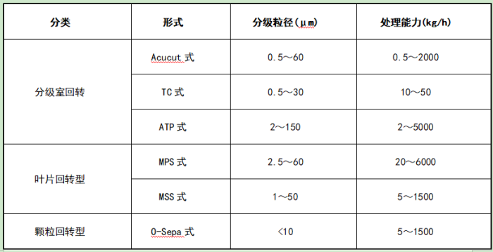 由于超细粉体在多个领域的发展与应用,也促进了超细粉体分级技术的进步,其中涡轮式气流分级机由于分级效率和分级精度高,操作弹性大,因此成为目前主流的超细粉体分级设备。