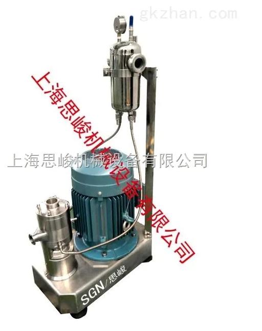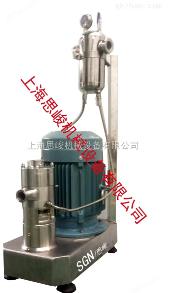 德国高剪切均质机是SGN(上海)公司经过研究刚刚研发出来的一款新型产品,该机特别适合于需要研磨均质乳化均质一步到位的物料。公司将三级高剪切均质乳化机进行改装,公司将三级变更为一级,然后在乳化头上面加配了胶体磨磨头,使物料可以先经过胶体磨细化物料,然后再经过乳化机将物料均质乳化均质。胶体磨可根据物料要求进行更换(公司提供了2P,2G,4M,6F,8SF等五种乳化头供客户选择)。客户可以根据藻类物料的粘度,硬度,粒径,处理量等具体的要求,来选配更换磨头和均质头的型号大小,已达到适合的研磨均质的效果。