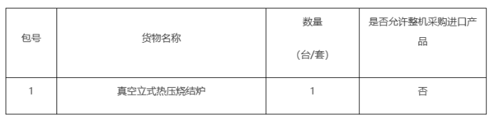 项目名称:中国科学院宁波材料技术与工程研究所真空立式热压烧结炉采购项目