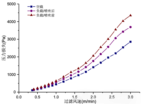 喷吹工作时压损小于喷吹不工作时压力损失;