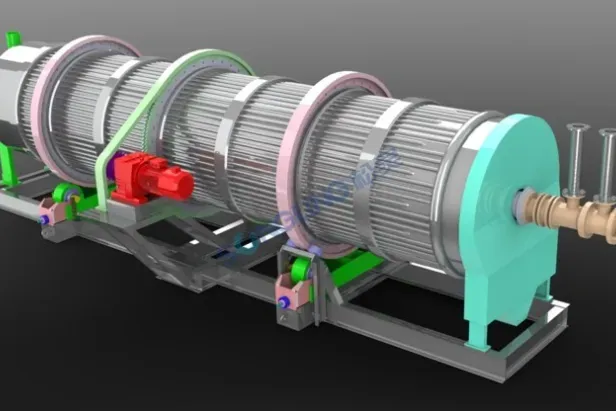 膜式滚筒烘干机由进料体、膜式滚筒、出料体、旋转接头、水汽管路系统、支撑回转系统、驱动系统、电控系统等单元构成。