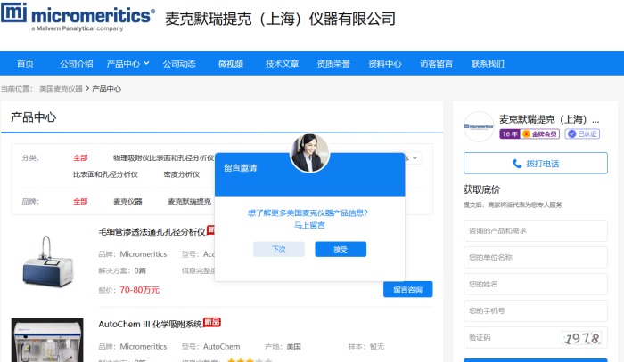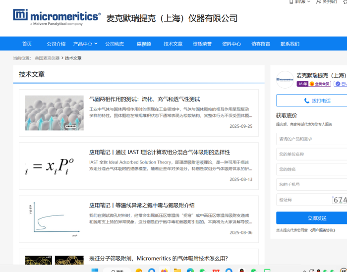 麦克默瑞提克(上海)仪器有限公司作为全球领先的粉体表征仪器制造商,在比表面积及孔隙度分析仪、真密度仪、化学吸附仪等高端仪器领域深耕数十年。其产品以"测量精准、性能稳定、技术领先"的特质,在能源材料、催化剂、制药、高校科研等细分领域得到广泛应用。