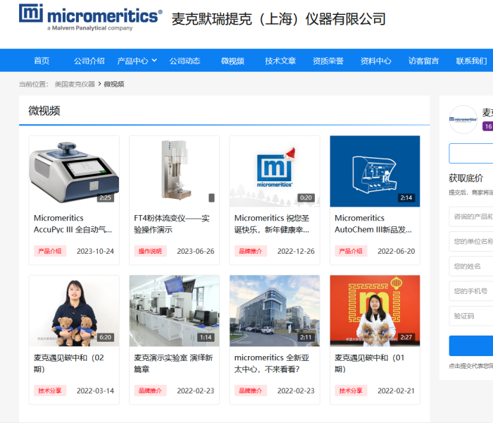 粉体网"微视频"功能为麦克默瑞提克提供了全新的展示方式: