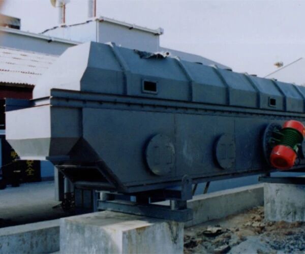 工作原理:物料自进料口进人机内,与流化床分布板进入的热风接触并呈流态化.在振动力作用下,逐步干燥的物料做抛掷状向前连续运动,干品由排料口排出,在流化、干燥运行过程中,经流化床分布板孔眼落下的呆料由倾斜的导料板同样使其做抛掷状向前运动.并由排料口排出,配以适当结构防止返料、喷料发生,改善作业环境.提高了生产效率。