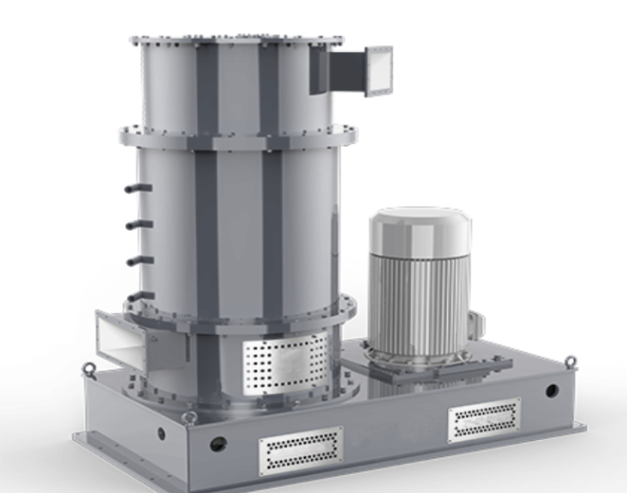 根据所需产品的细度经过主机上方的分级机进行分级得到成品,成品随着气流进入旋风分离器然后进入脉冲布袋收尘器进行产品收集。对于液料或压滤后的滤饼可将系统用空气加热器加热,此时蜂巢磨是一台高效的干燥机,其允许的进风温度可达150°C~300°c,可根据需求调整磨机出口温度来控制对产品的干燥程度。典型的磨机出口温度是80°C~110°℃,而产品含水率可控制在0.15%以下,最低可控制在0.1%。滤饼、软泥或浆料可进行―次性操作同时实现干燥、粉碎(解聚),出磨后的粒径分布可还原物料干燥前的初始粒径。
