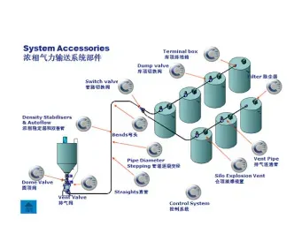 浓相气力输送系统可将物料从一个或多个集料点输送到一个或多个接收点,可输送各种类型的粉体物料,如粉末,颗粒,混合料等各种松散的固体物料。