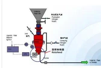 气力喷吹系统,用于将物料连续、精确地输送到下游工艺流程,实现精确可控的物料输送。输送距离可达上千米,精度可达±0.5%,输送能力可达100t/h。可直接输送至压力环境下,即可一次性将物料送至带压环境内,降低了系统复杂度。