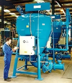 浓相气力输送适用于输送难以输送的、带磨蚀性的或脆性的物料。浓相气力输送是以栓塞或满管的形式用比较慢的速度将物料沿着管道向前推进。这意味着物料对管道、弯头的磨损小,管道寿命长,系统维护量小,同时较高的固气比也可以降低功耗和运行成本。