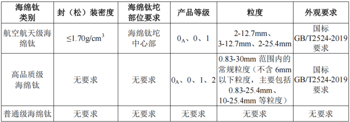 金钛股份还是《海绵钛》(GB/T2524-2019)等9个海绵钛行业相关国家标准编制的重要参与单位,是国家工信部首批授予的制造业单项冠军培育企业,公司生产的小粒度海绵钛系“制造业单项冠军产品”。