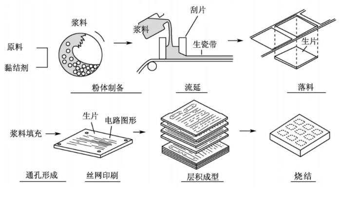 ?1950年,美国无线电公司取得突破性研究进展,提出多层陶瓷基板的核心工艺概念,包括精密电路设计、通孔形成及叠层共烧技术;