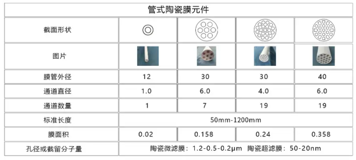 根据陶瓷膜的配置,常见的类型有片状膜、板状膜和管状膜(多通道管状膜和单分支膜管)。其中,片状陶瓷膜主要用于工业污水处理,板式陶瓷膜主要用于生活污水处理,管状陶瓷膜主要用于饮用水处理。