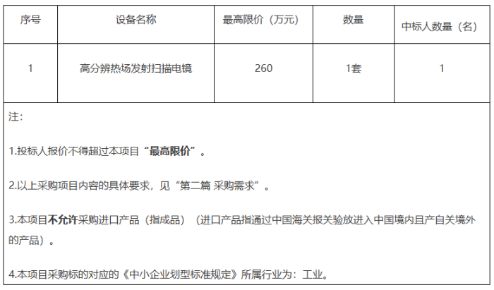 项目名称:高分辨热场发射扫描电镜采购